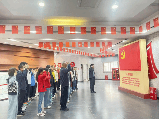在革命旧址前,全体党员面对鲜红党旗,庄严重温入党誓词。在讲解员的带领下,全体党员怀着崇敬之情,先后参观了新四军第五师历史陈列馆、李先念旧居等革命旧址,生动再现了抗战时期新四军将士在极端艰苦条件下坚持抗战、发动群众、建设根据地的峥嵘历程。党员们触景生情,不时驻足凝视,现场气氛庄重而温暖。