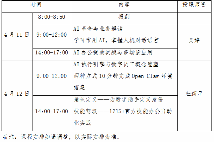 培训时间:2026年4月11日-12日