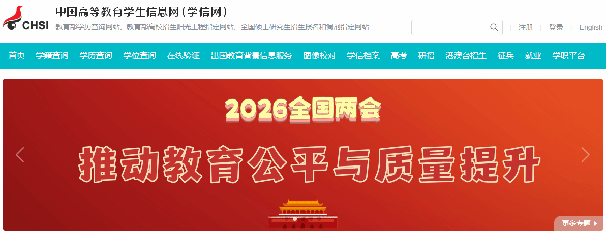 学校高等学历继续教育2026级新生学籍注册工作已经完成。为确保新生注册信息准确无误,维护学生权益,根据教育部《高等学校学生学籍学历电子注册办法》和省教育厅关于学籍管理工作要求,2026级所有录取报到新生需登录中国高等教育学生信息网(以下简称“学信网”)实名注册并核实本人身份信息和学籍注册信息。
