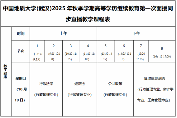 本学期开展的面授同步直播课程教学于10月19日进行,根据教学计划,各专业面授课程及具体时间安排如下: