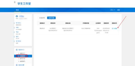 (2)进入直播课堂后,可查看面授课程列表,选择课程,点击“进入直播”即可跳转至课程直播界面。